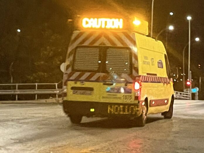 •Έλεγχο ταλαντώσεων και μετρήσεις πραγματοποίησε στο σημείο, τις πρώτες πρωινές ώρες της Τρίτης 15 Ιουλίου, η Διαχειρίστρια Εταιρεία «Νέα Οδός».