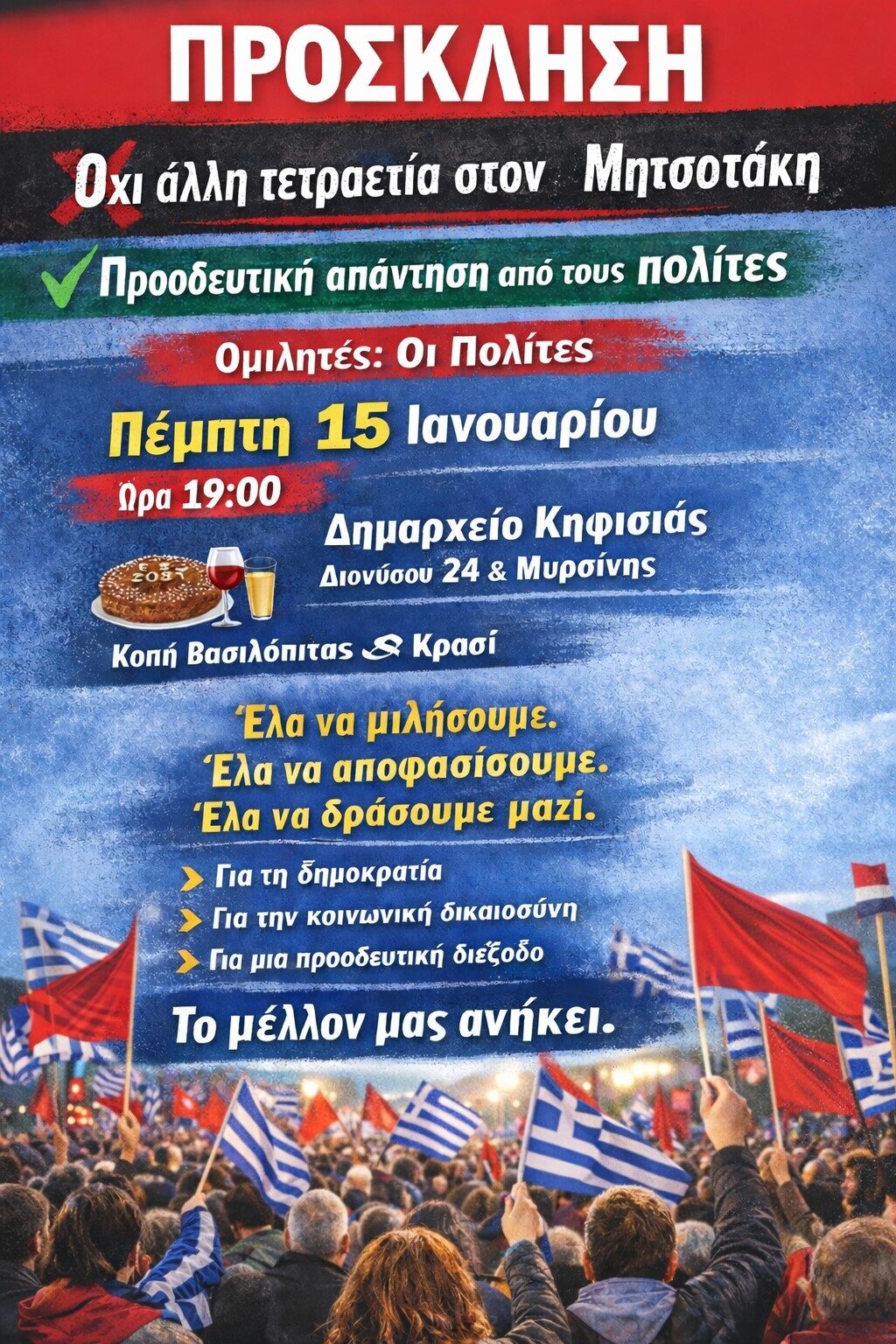-Κοπή Βασιλόπιτας την Πέμπτη 15/01/26 και ώρα 19:00 στο Δημαρχείο Κηφισιάς.