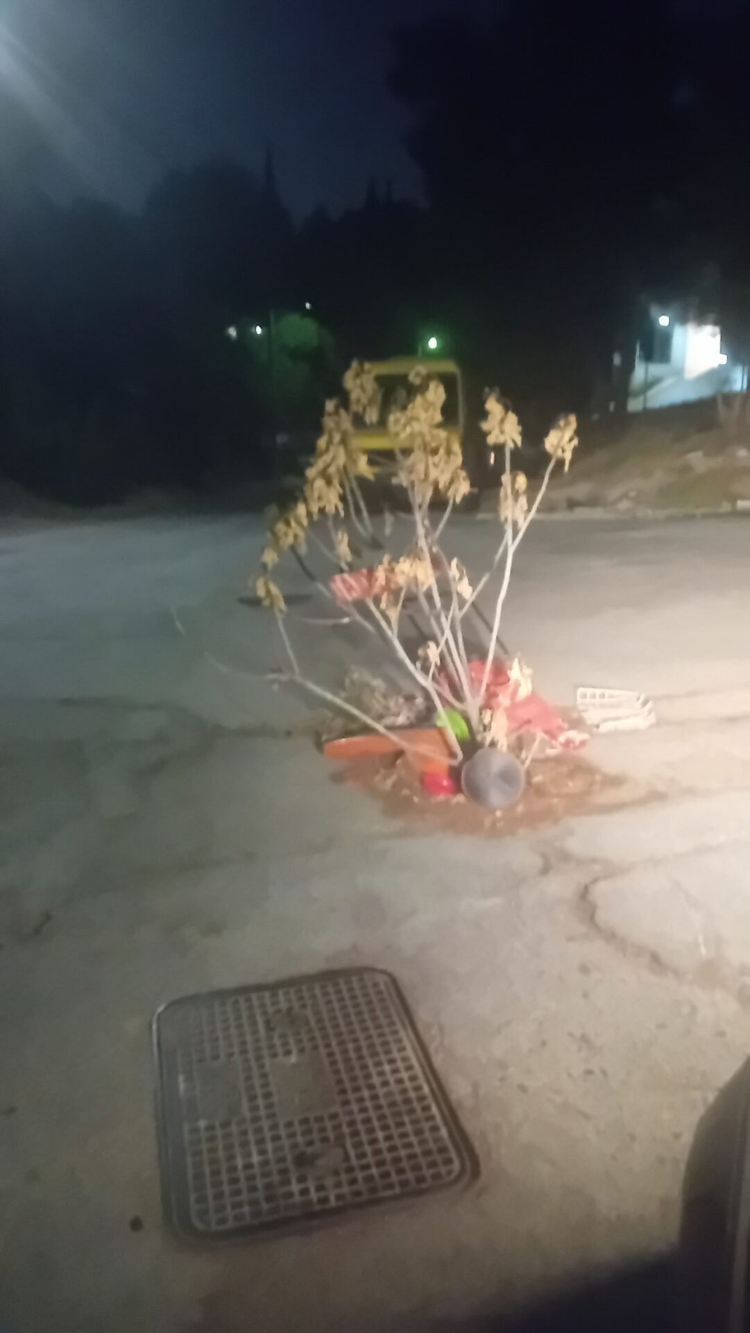 Μεγάλη προσοχή! Πηγαίνοντας στο σπίτι μου παραλίγο να έχω μεγάλο ατύχημα. Στην οδό Ευέλπιδών στην Άνω Κηφισιά υπάρχει μεγάλη λακκούβα καλυμμένη από ένα κλαδί και παιδικά παιχνίδια στη βάση.
