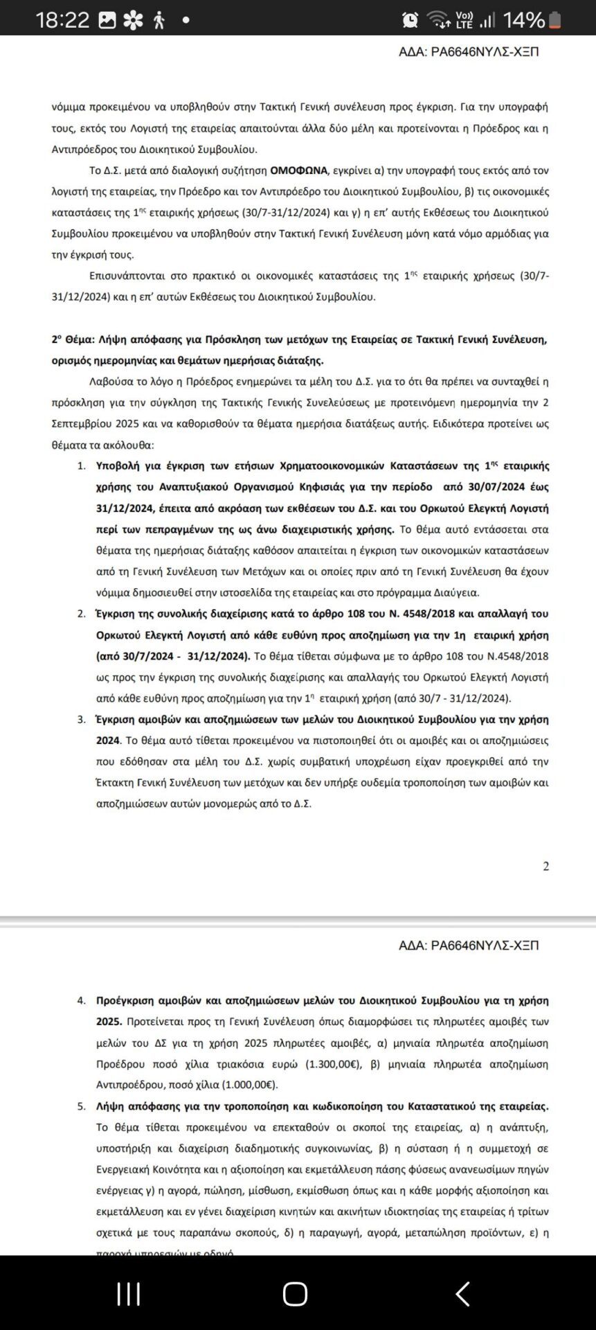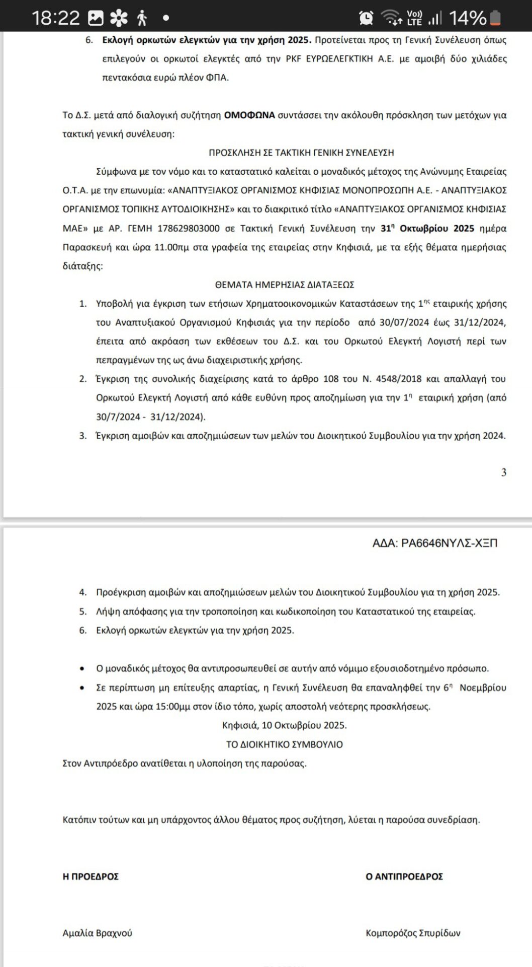 Στην 4η παράγραφο του 2ου θέματος αναφέρονται οι αμοιβές της Προέδρου και του Αντιπροέδρου: 1300 και 1000 ευρώ αντιστοίχως.