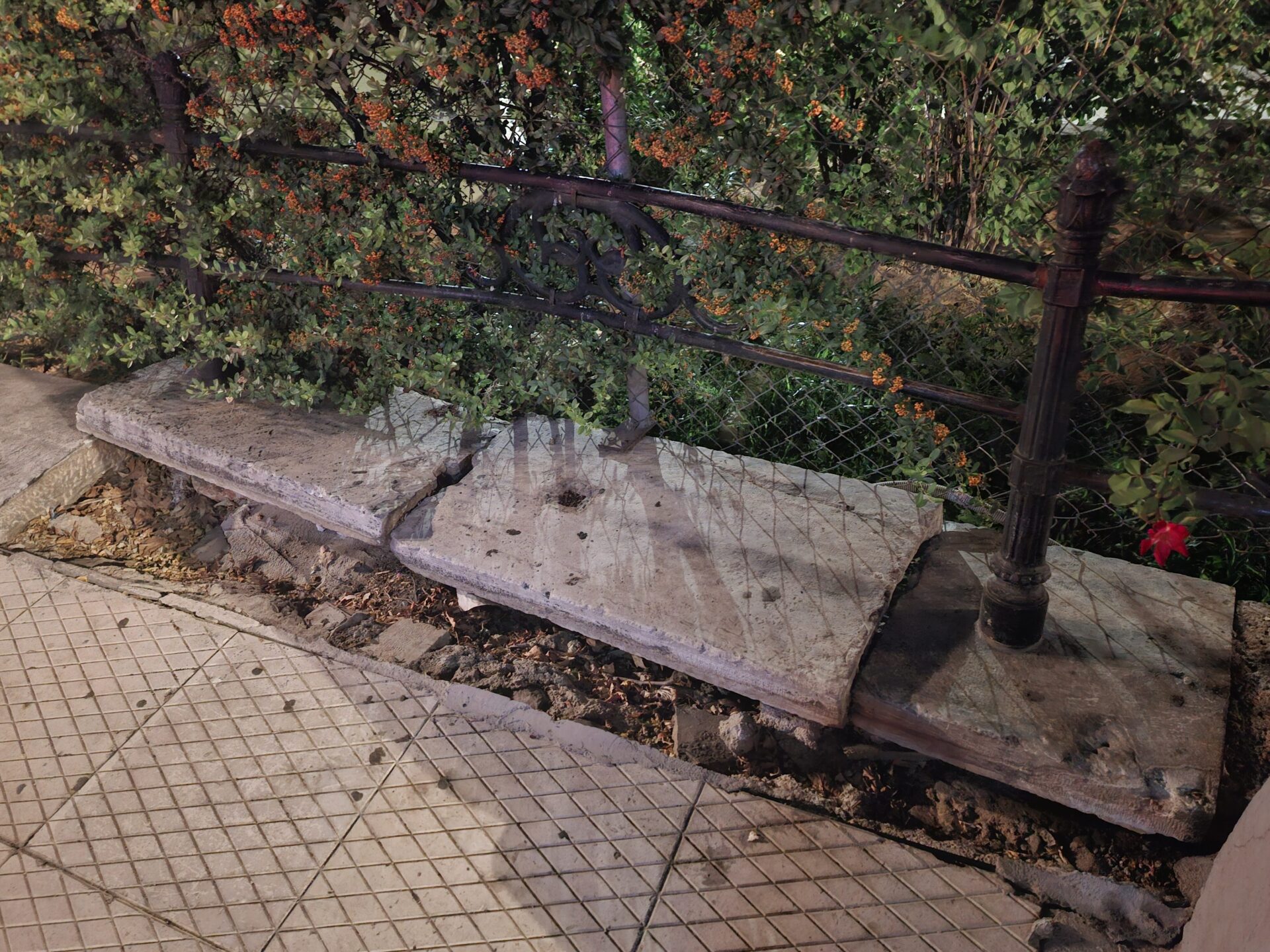 -Πεζοδρόμια σπασμένα και εγκαταλελειμμένα στην τύχη τους..