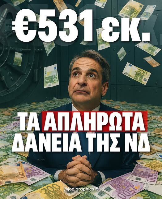 Τα Τραπεζικά δάνεια της ΝΔ αυξήθηκαν από 475,5 εκ. € το 2023 στα 531 εκ. € το 2024 – ενώ, εκτός του ότι δεν πληρώθηκαν οι τάκοι, οι τράπεζες της έδωσαν νέα δάνεια, ύψους 36 εκ. €!