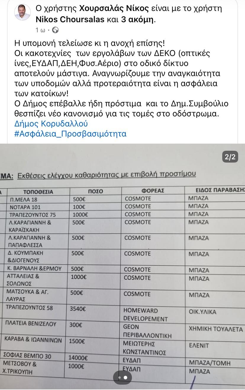 Αυτά ΔΕΝ είναι πρόστιμα για ζημιές στο οδόστρωμα αλλά για τα Μπάζα από εργασίες που δεν έγινε αποκομιδή τους από τον εργολάβο ή την ΔΕΚΟ που ανέλαβε το έργο.