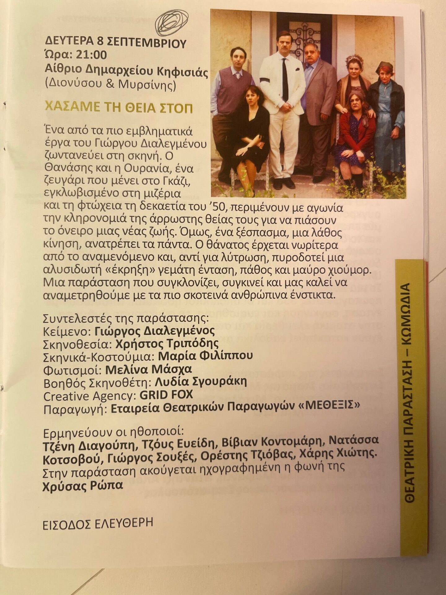 Για την εν λόγω Θεατρική Παράσταση η Είσοδος ήταν Ελεύθερη.
