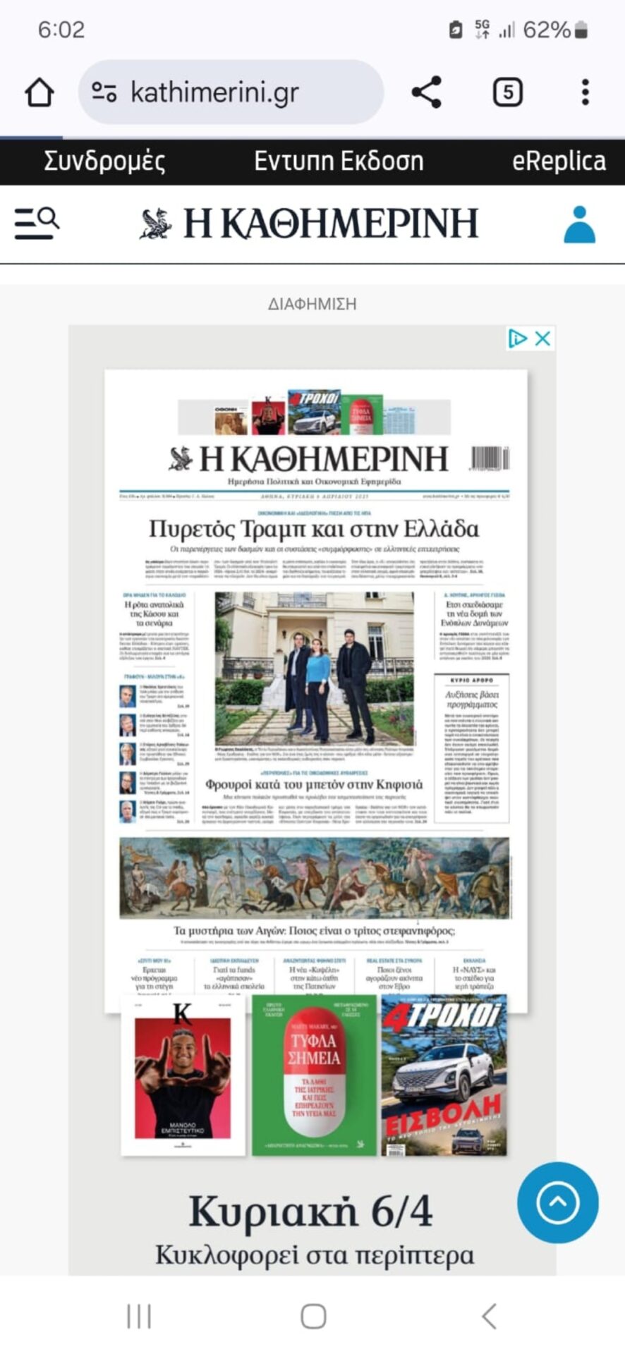 Σαν αναγνώριση του έργου της «Κίνησης Πολιτών Κηφισιάς»  η εφημερίδα «Καθημερινή της Κυριακής» έκανε πρωτοσέλιδο την «Κίνηση Πολιτών Κηφισιάς» και ανέδειξε σε ολοσέλιδο αφιέρωμα λεπτομερώς το έργο τους.