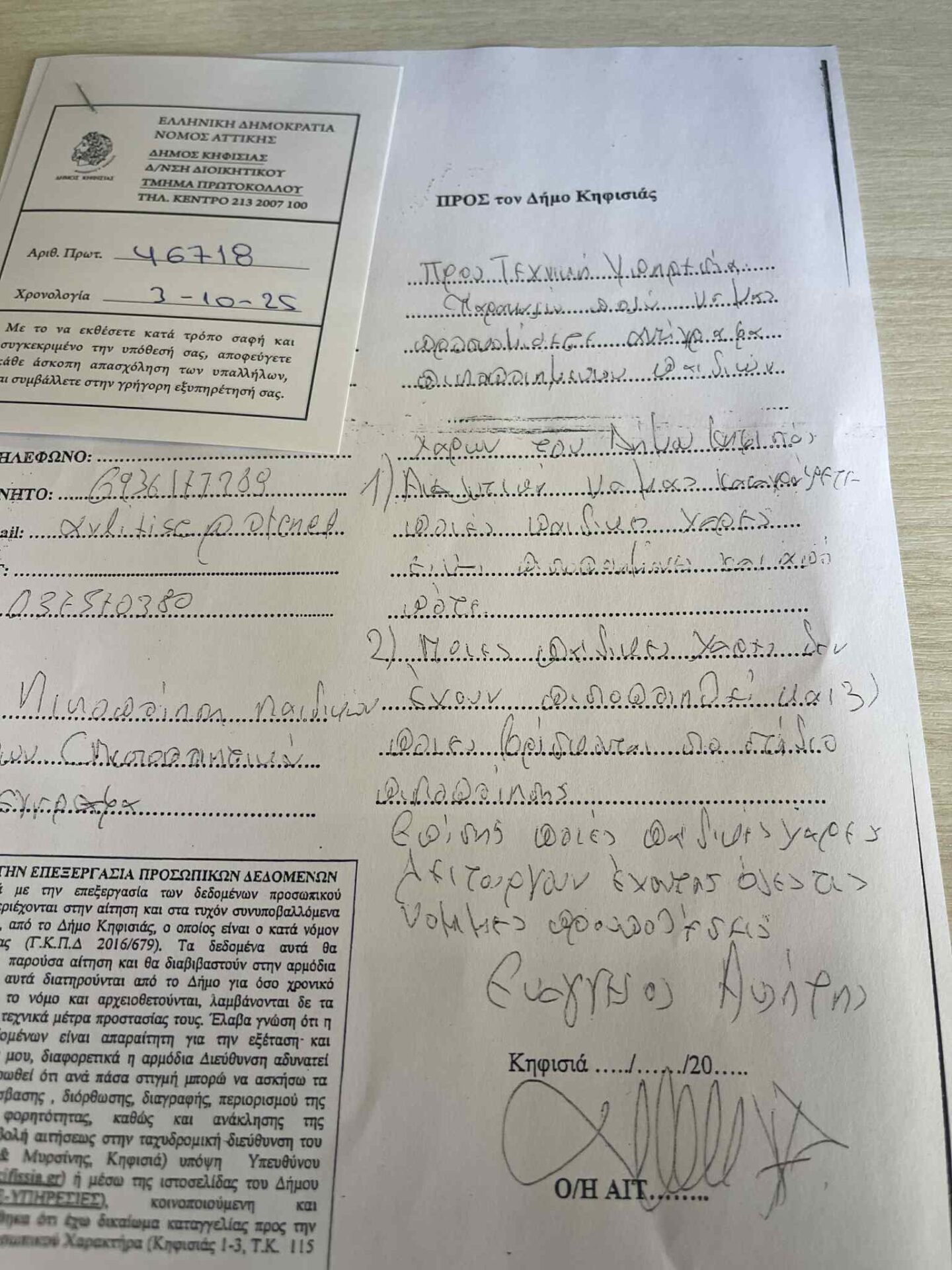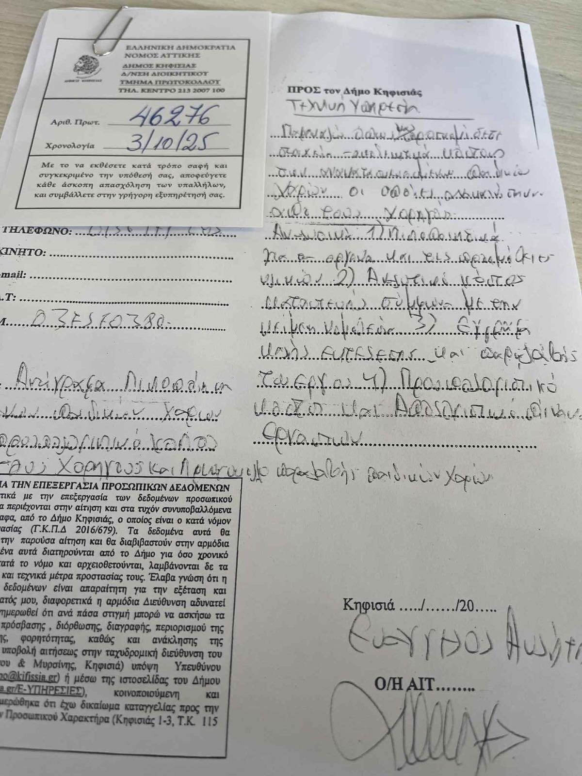 ΥΣΤΕΡΟΓΡΑΦΟ: Ο κ. Ευάγγελος Αυλήτης κοινοποίησε τα κάτωθι δύο Αιτήματα προς την Τεχνική Υπηρεσία του Δήμου Κηφισιάς με Αριθμούς Πρωτοκόλλου 46276 και 46718 ημερομηνίας 03/10/25 ζητώντας τα ακόλουθα: