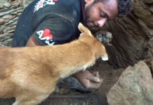 Σκυλίτσα σκάβει στα ερείπια για να σώσει τα κουτάβια της......