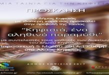 Όσοι δεν είδαν στην πρώτη του προβολή, το ντοκιμαντέρ «Κηφισιά, ένα αληθινό παραμύθι», που δημιούργησαν οι μαθητές των Λυκείων του Δήμου Κηφισιάς έχουν...