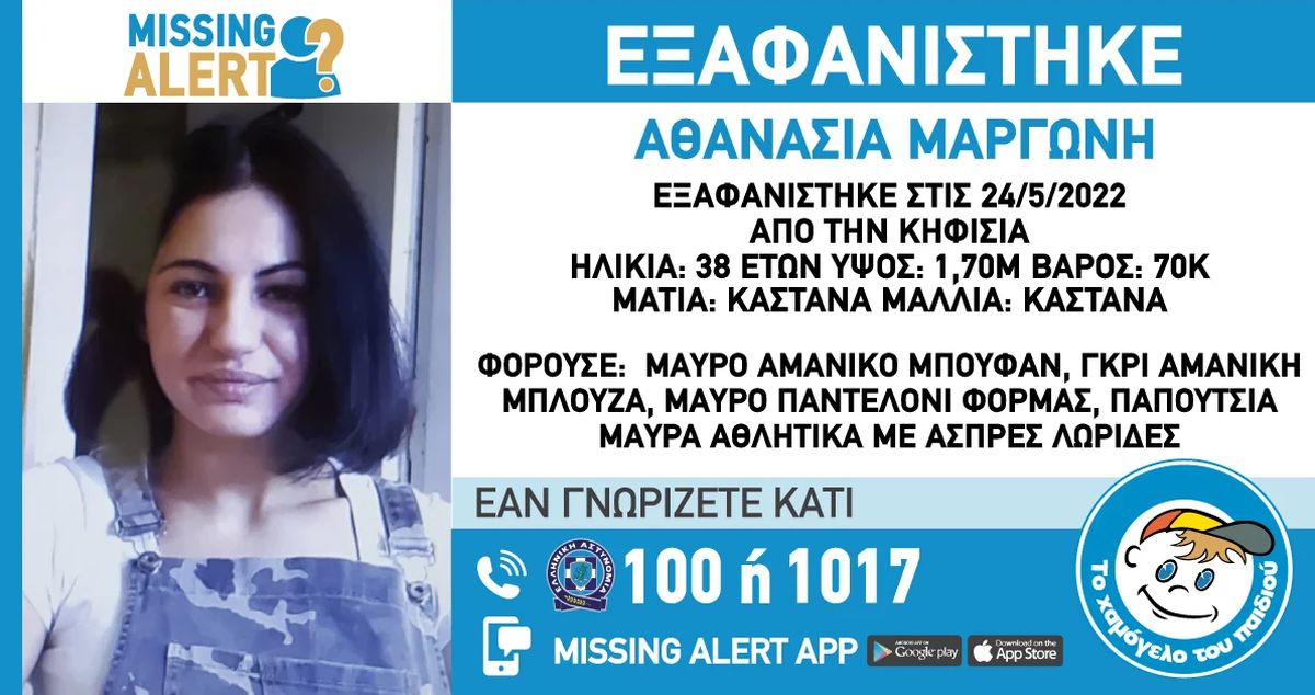 Ώρες αγωνίας περνάει η οικογένεια της 38χρονης Αθανασίας Μαργώνη, τα ίχνη της οποίας χάθηκαν απο την Κηφισιά, το πρωί της 24ης Μαΐου.